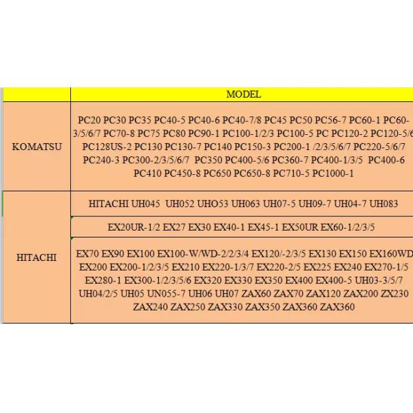 5. Under carriage parts : steel track and pads , rubber track and pads , track link assy , track adjuster , Track roller , Carrier roller , Sprocket , Idler , etc .